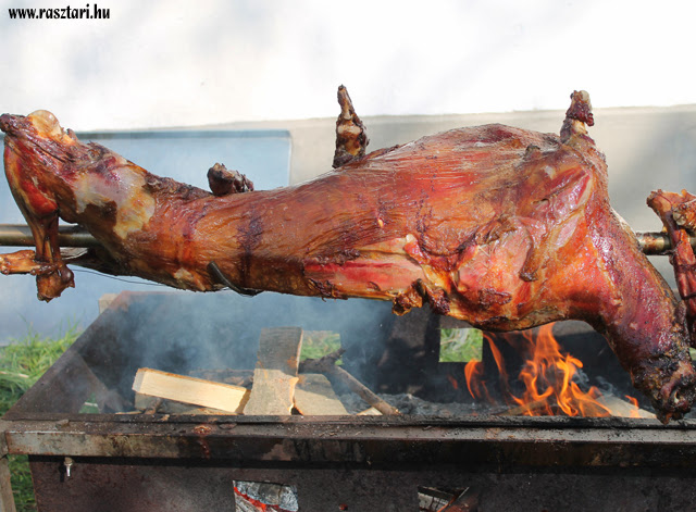 Lassú tűzön, keményfa (tölgy, bükk, akác) parázson, állandó forgatás mellett...